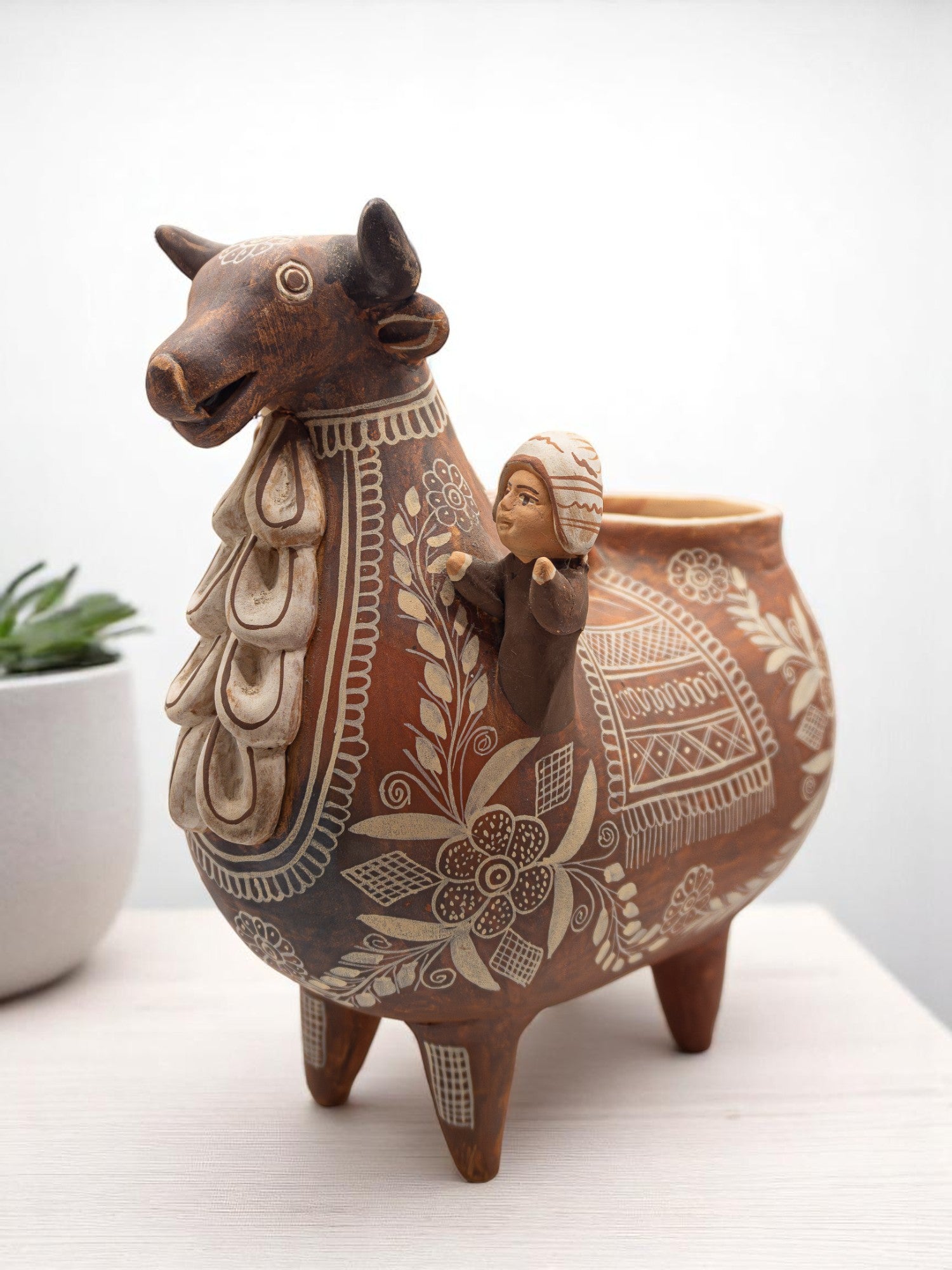 Celebrate heritage and elevate your space with this exquisite Handcrafted Andean Bull, a signature piece from Quinua Craft.