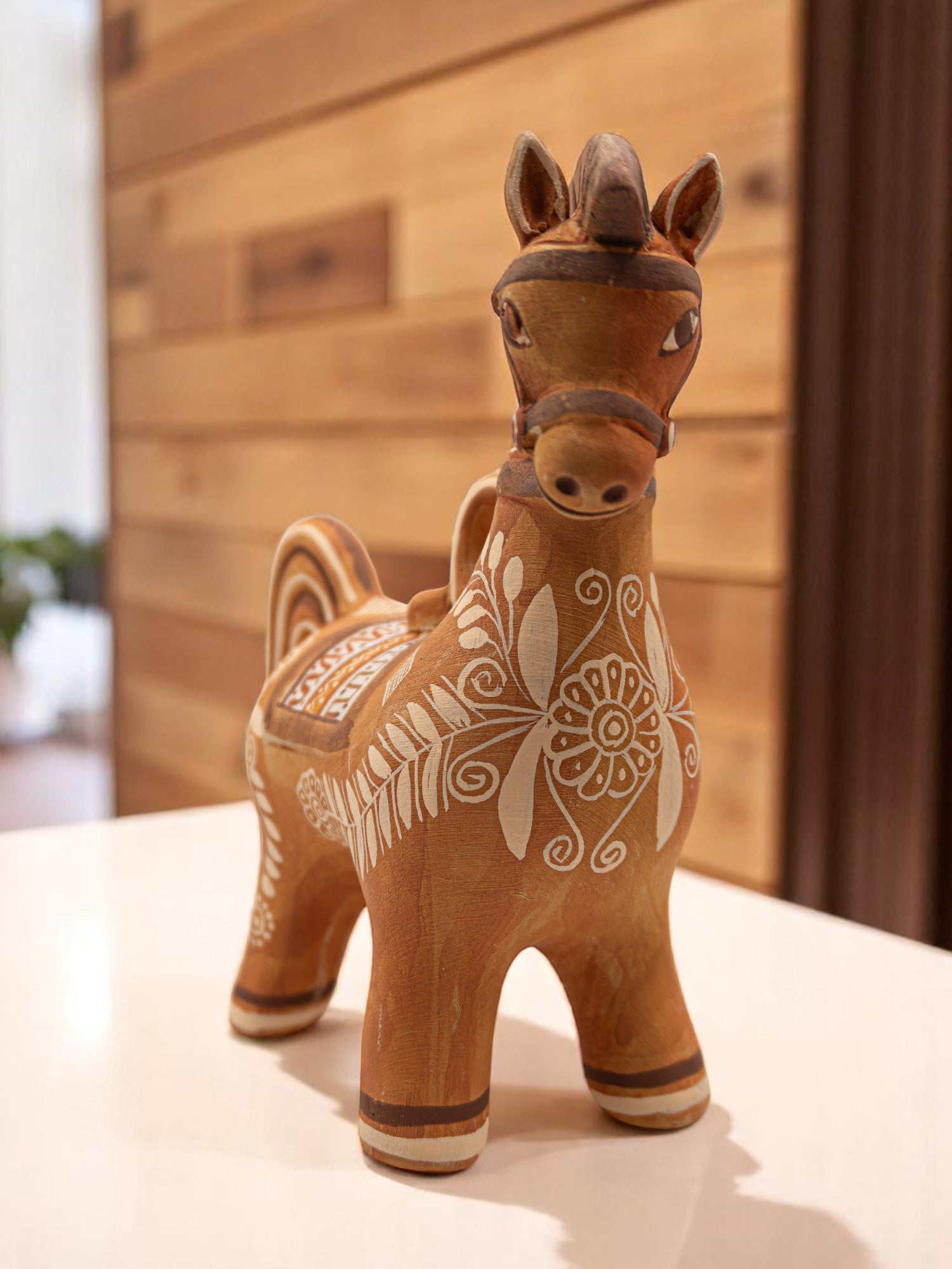Crafted with natural Peruvian clay and hand-etched with floral and geometric motifs, each horse is a celebration of the connection between tradition and timeless design. Its presence adds character and warmth to luxury interiors, boutique spaces, or curated art collections, seamlessly blending rustic soul with modern sophistication.