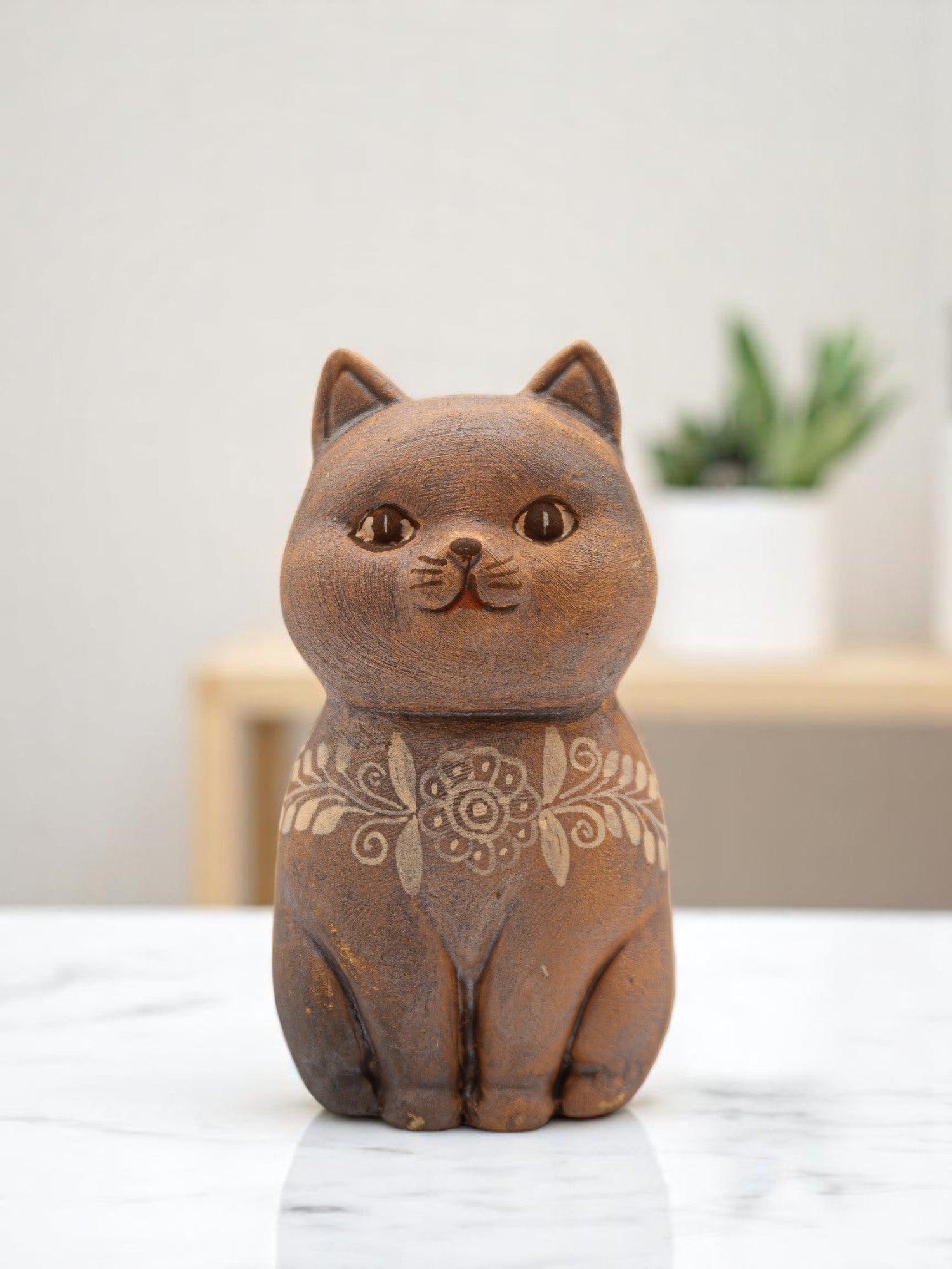 Lovingly sculpted in natural clay and detailed with hand-etched floral motifs, this decorative cat blends Andean folklore with a minimalist aesthetic, making it the perfect accent for modern interiors with soul. Rooted in ancestral craftsmanship, this piece invites a sense of calm, warmth, and character into any room — whether adorning a coffee table, bookshelf, or boutique hotel suite.